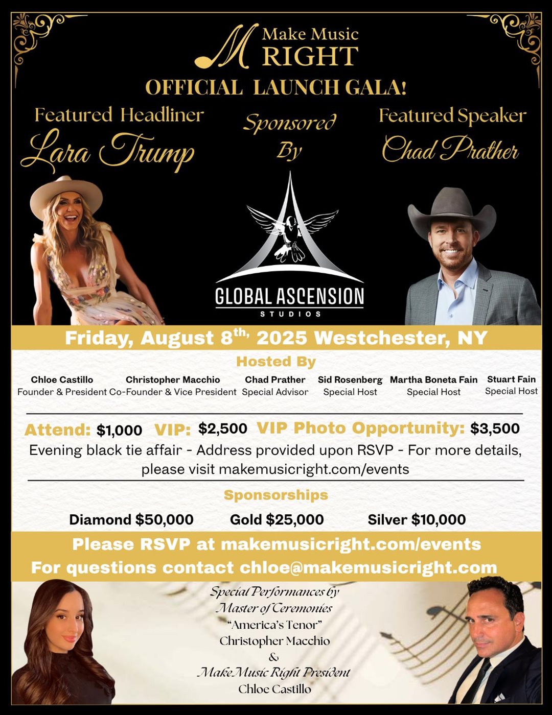 كما أن مبادرة Make Music Right التي أسستها لارا ترامب تحمل شعارًا يذكّر مباشرة بعبارة ترامب الشهيرة Make America Great Again، وتهدف إلى دمج الموسيقى في الخطاب السياسي المحافظ، وإنتاج أعمال فنية تدعم الهوية الأمريكية التقليدية.