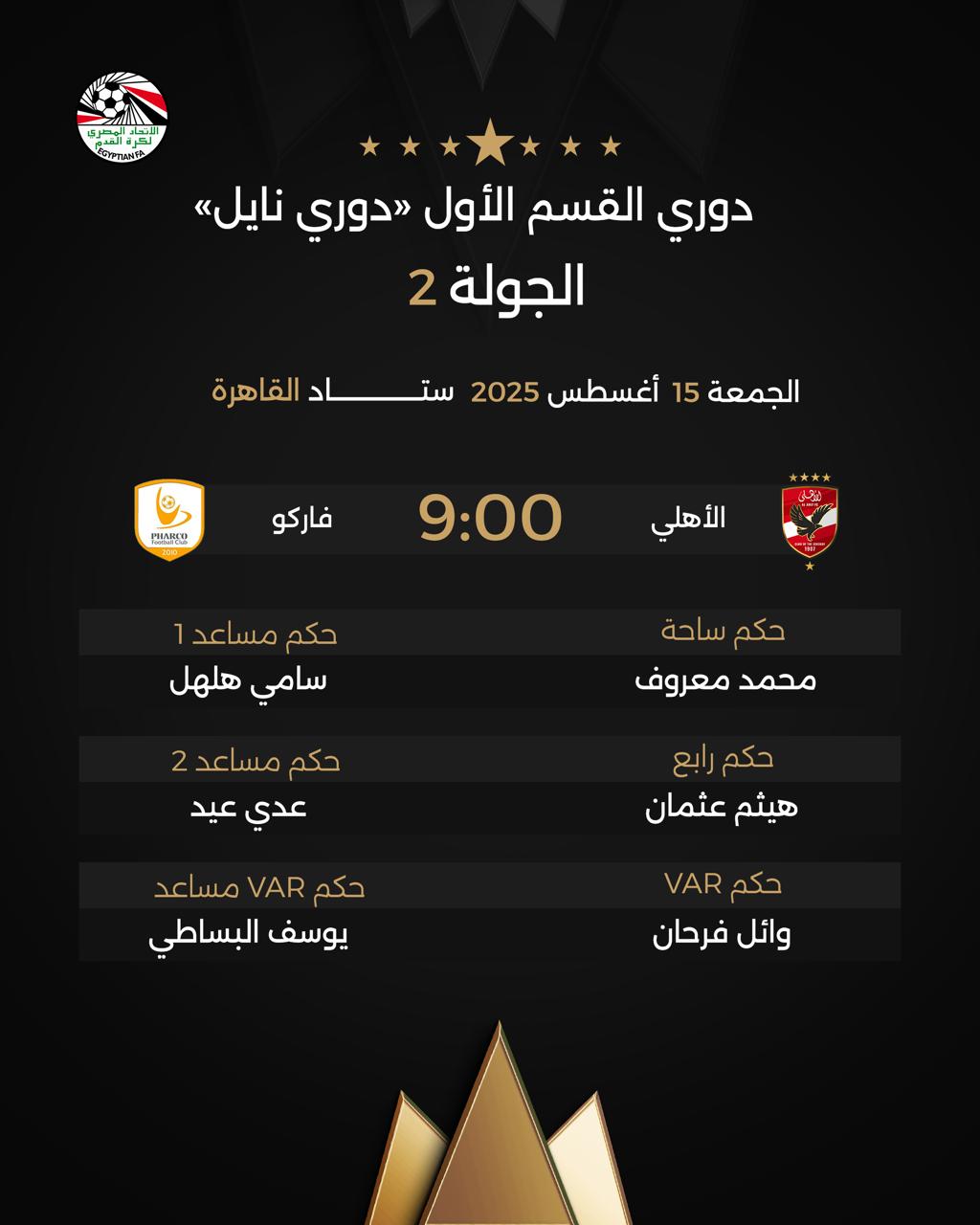 معروف يدير مباراة الأهلي وفاركو.. حكام مباريات الجمعة في ثاني جولات الدوري