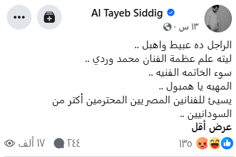 محيي إسماعيل يثير غضب أهل النوبة بعد سخريته من المطرب محمد وردي