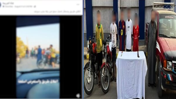بالفحص أمكن تحديد وضبط السيارة، والدراجتين دون لوحات معدنية، الظاهرين بمقطع الفيديو ومستقليهم 6 أشخاص - مقيمين بمحافظة بنى سويف، وبحوزتهم 2 سلاح أبيض، وبمواجهتهم اعترفوا بارتكاب الواقعة خلال احتفالهم بزفاف شقيق أحدهم.