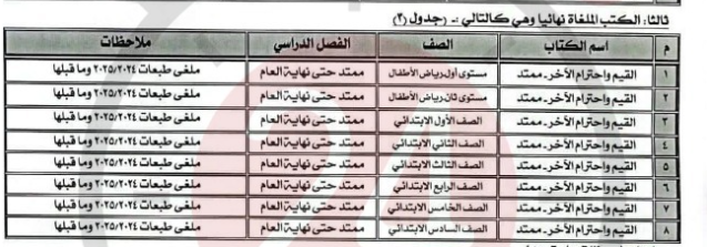 وجاءت الكتب الملغاة نهائيا كالتالي: