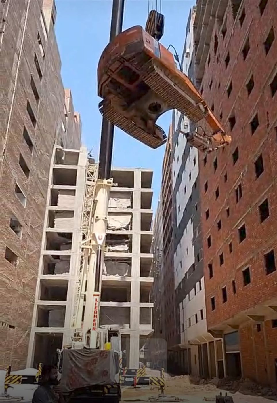محافظة الجيزة ترفع 4 حفارات جاك هامر أعلى الأبراج المخالفة باللبيني لإزالتها