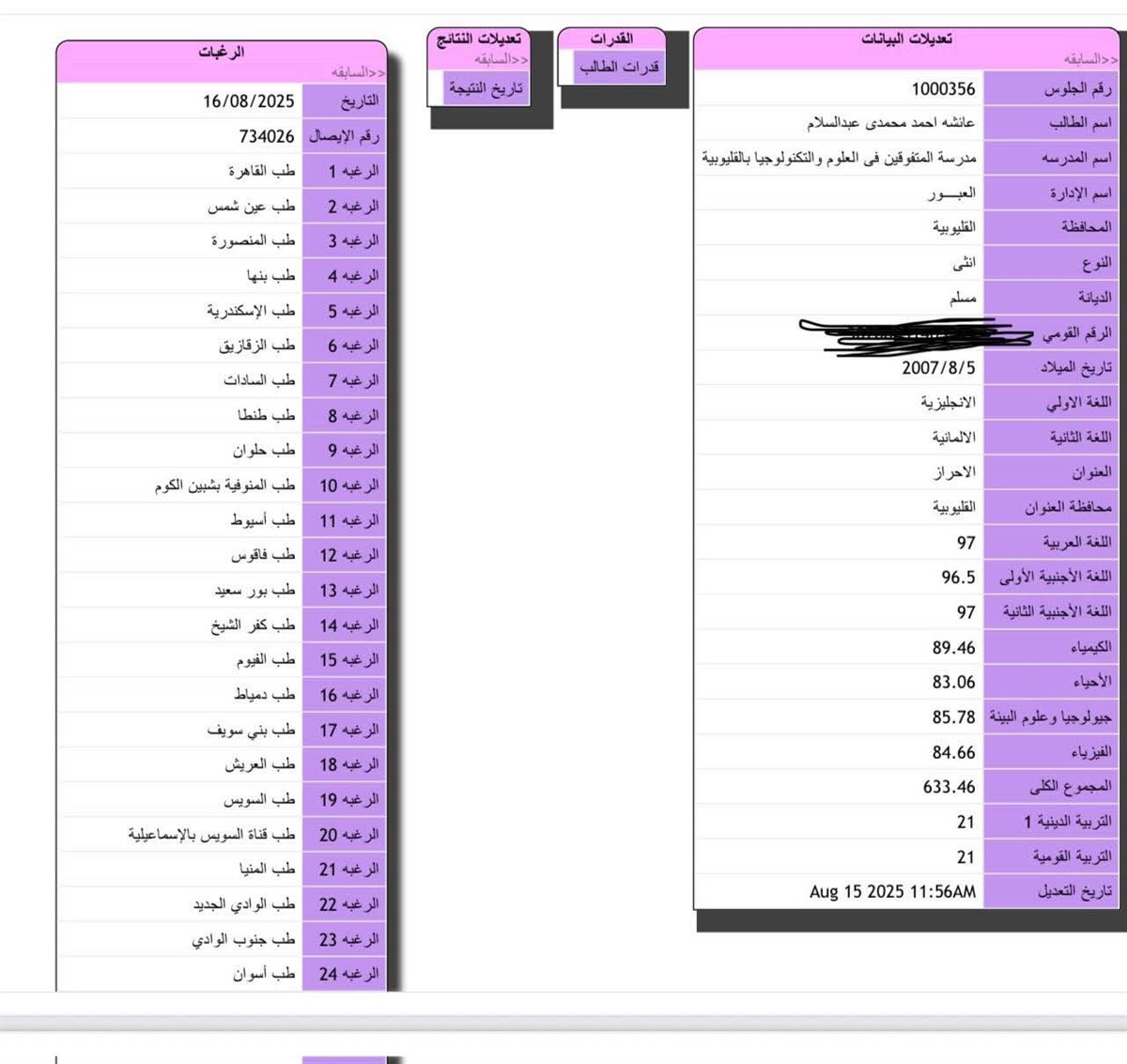 وكان والد الطالبة قد تقدم باستغاثة عاجلة لوزارة التعليم العالي، مطالبًا بإنصاف ابنته بعد أن فوجئت بتغيير رغباتها قبل إغلاق باب التنسيق، مما كاد أن يضيع حلمها في الالتحاق بكلية الطب.