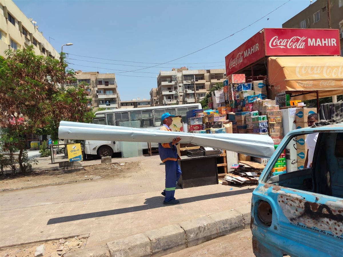 حي النزهة يواصل حملات رفع الإشغالات.. وإزالة كشك مخالف بسوق المشربية في الشيراتون