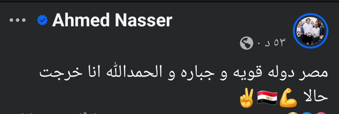 ونشر أحمد ناصر، نائب رئيس اتحاد شباب مصر بالخارج، عبر صفحته على موقع فيس بوك، إعلان الإفراج عنه، قائلا: مصر دولة قوية وجبارة.. والحمد لله أنا خرجت حالا.