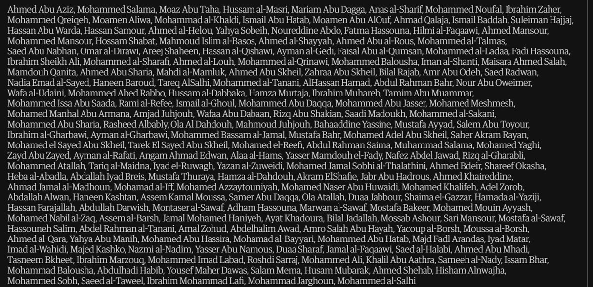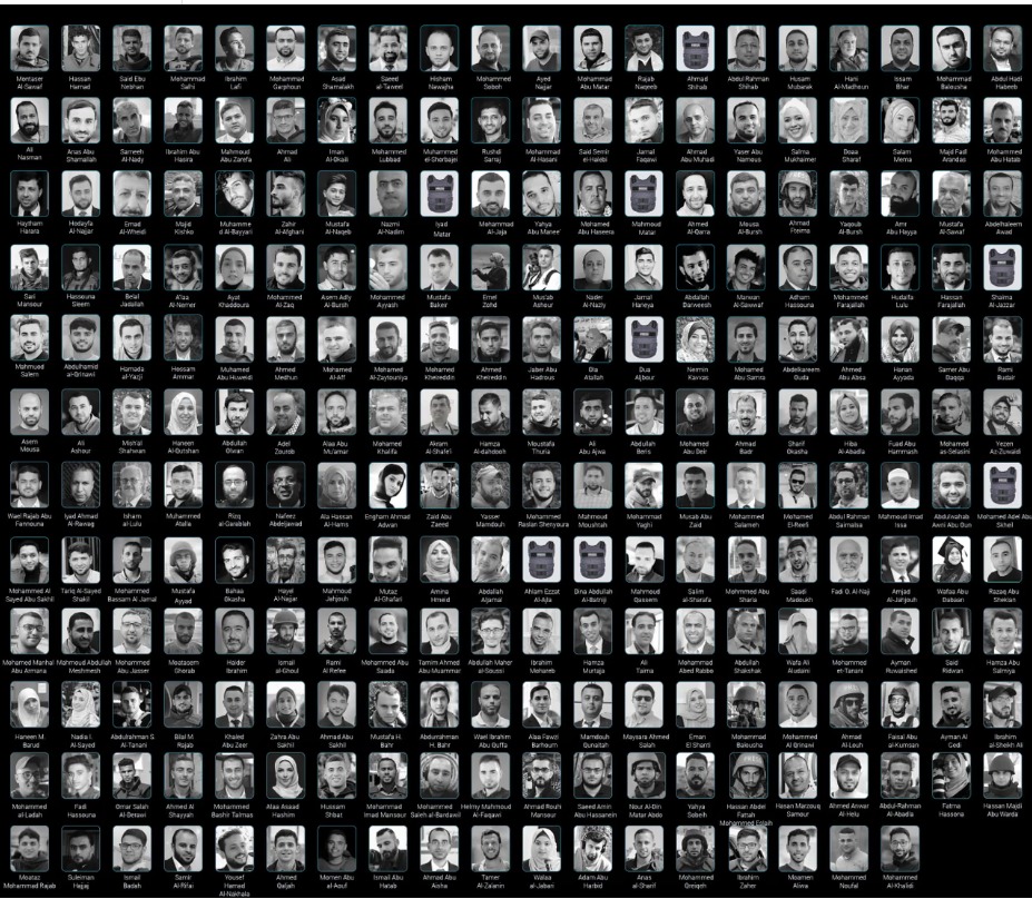 وأوضحت أن الأسماء المدرجة في هذه القائمة لا تشكل أرواحًا ضائعة ومستقبلًا وعائلات حزينة فحسب، بل تشكل أيضًا خسارة جيل من الصحفيين الذين قتلوا في أثناء قيامهم بعملهم في أكثر البيئات رعبًا وتدميرًا والذين لا يمكن استبدال شجاعتهم وتفانيهم في تغطية هذا الصراع.