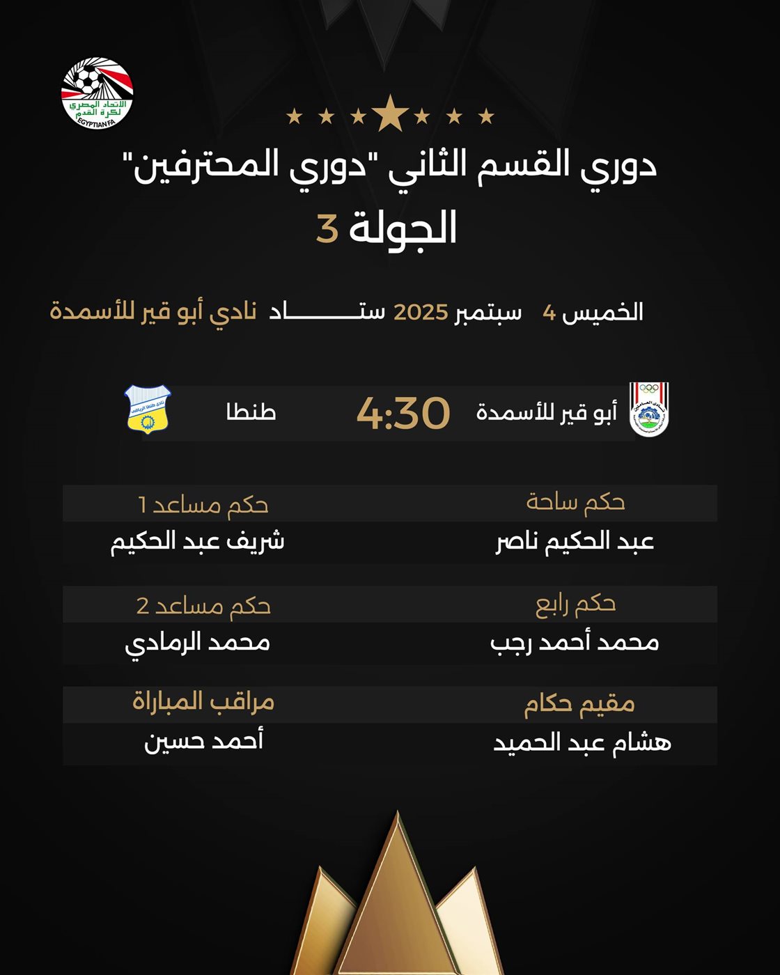 تعرف على حكام مباريات الجولة الثالثة من دوري القسم الثاني للمحترفين