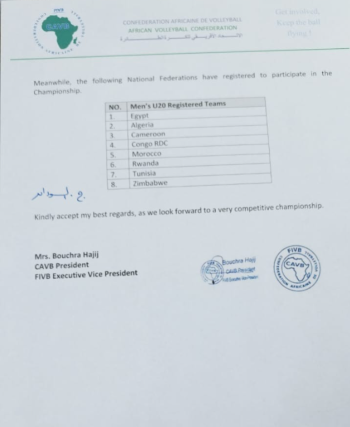 تلقى مجلس إدارة الاتحاد المصري للكرة الطائرة برئاسة المهندس ياسر قمر موافقة 9 دول على المشاركة في بطولة إفريقيا للشباب والتي تستضيفها القاهرة خلال الفترة من 11 وحتى 21 سبتمبر الجاري على صالة حسن مصطفى بمدينة السادس من أكتوبر.