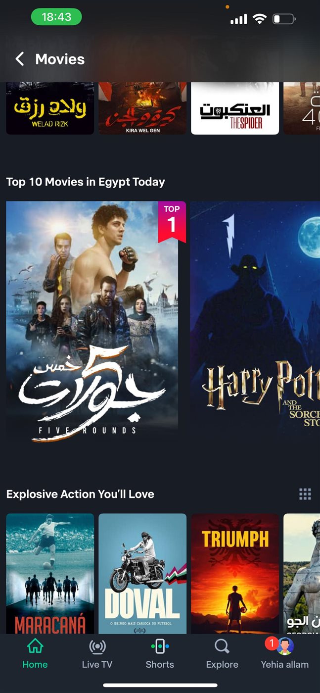 تصدر فيلم 5 جولات قائمة الأكثر مشاهدة على منصة شاهد في مصر، وهو من بطولة آدم الشرقاوي، ونور النبوي، وماجد المصري، وداليا شوقي، وعايدة الأيوبي، حيث احتل 5 جولات المركز الأول، من أصل 10 مراكز للأعمال الأعلى مشاهدة في مصر.