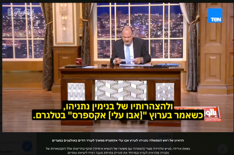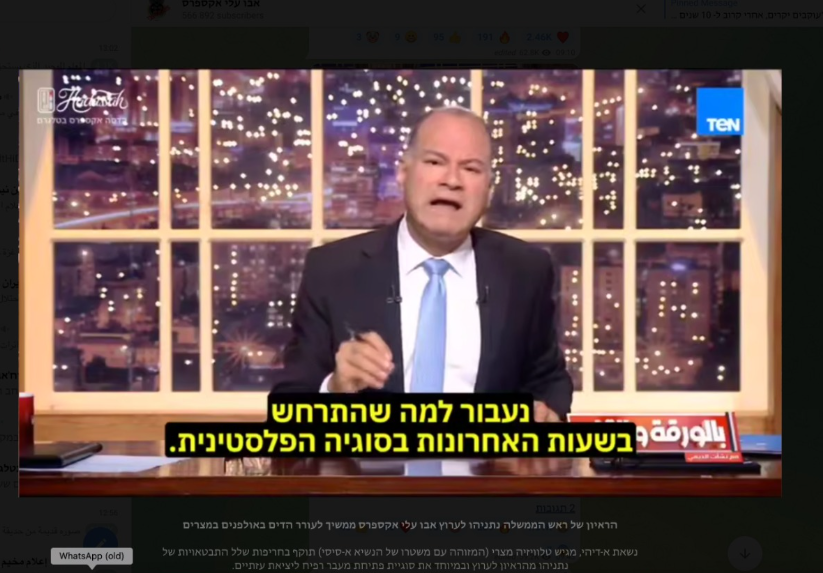 رصدت قناة "أبو علي إكسبرس" عبر تليجرام تعليق الإعلامي نشأت الديهي على مقابلة رئيس الوزراء الإسرائيلي بنيامين نتنياهو، حيث انتقد بشدة تصريحات نتنياهو، خاصة فيما يتعلق بفتح معبر رفح لخروج سكان غزة.