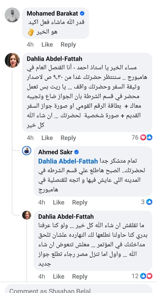 عبر فيس بوك.. القنصل العام في هامبورج تتدخل لحل أزمة ضياع جواز سفر مصري في ألمانيا
