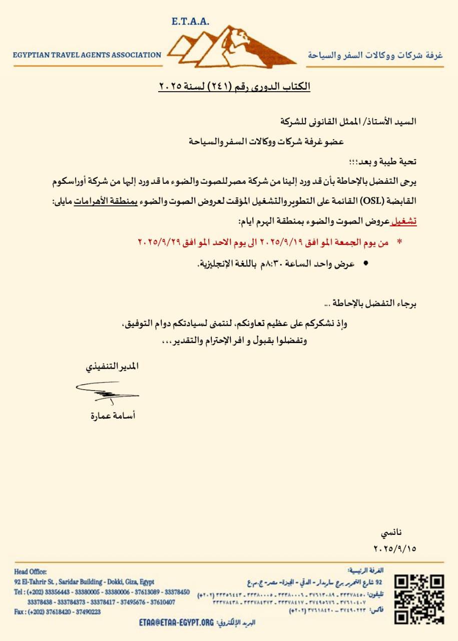 وقدمت غرفة شركات السياحة شكرها لشركات السياحة وأعضاء الغرفة على تعاونهم الدائم، مؤكدة أن هذه الخطوة ستسهم في تنشيط السياحة الثقافية وتوفير تجربة فريدة تبرز عظمة الحضارة المصرية أمام العالم.