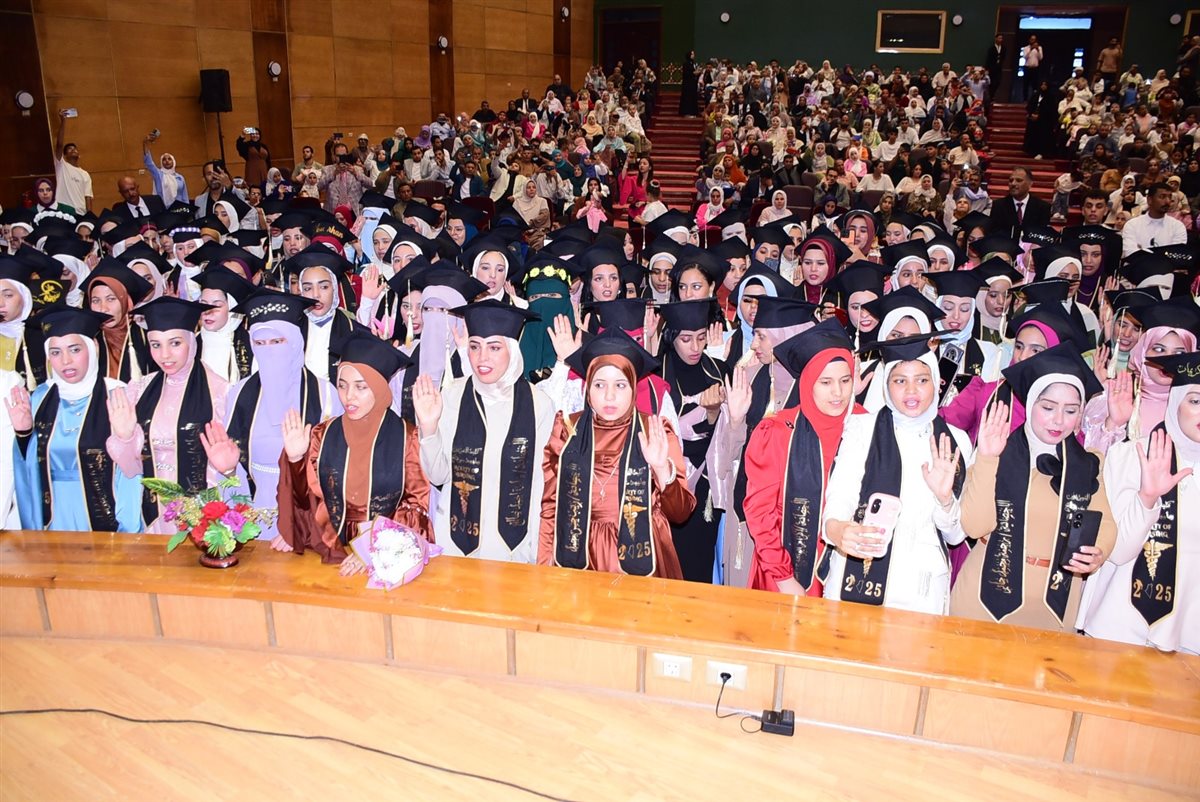 كان ذلك بحضور الدكتور عبدالناصر يس نائب رئيس الجامعة لشئون التعليم والطلاب، والدكتور خالد عمران نائب رئيس الجامعة لشئون خدمة المجتمع وتنمية البيئة، والدكتورة غني عبد الناصر عميد الكلية، والدكتورة أماني علي وكيل الكلية لشئون التعليم والطلاب، ووكلاء الكلية ورؤساء الأقسام ومديري الإدارات، ونخبة من أعضاء هيئة التدريس والعاملين بالكلية وأولياء الأمور.