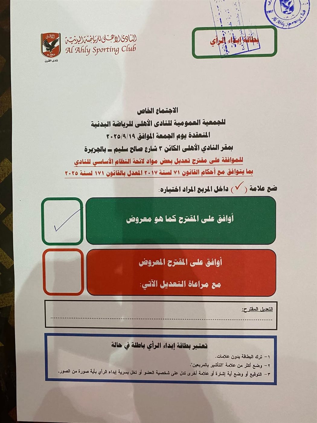 استمارة التصويت الخاصة بالجمعية العمومية للنادي الأهلي