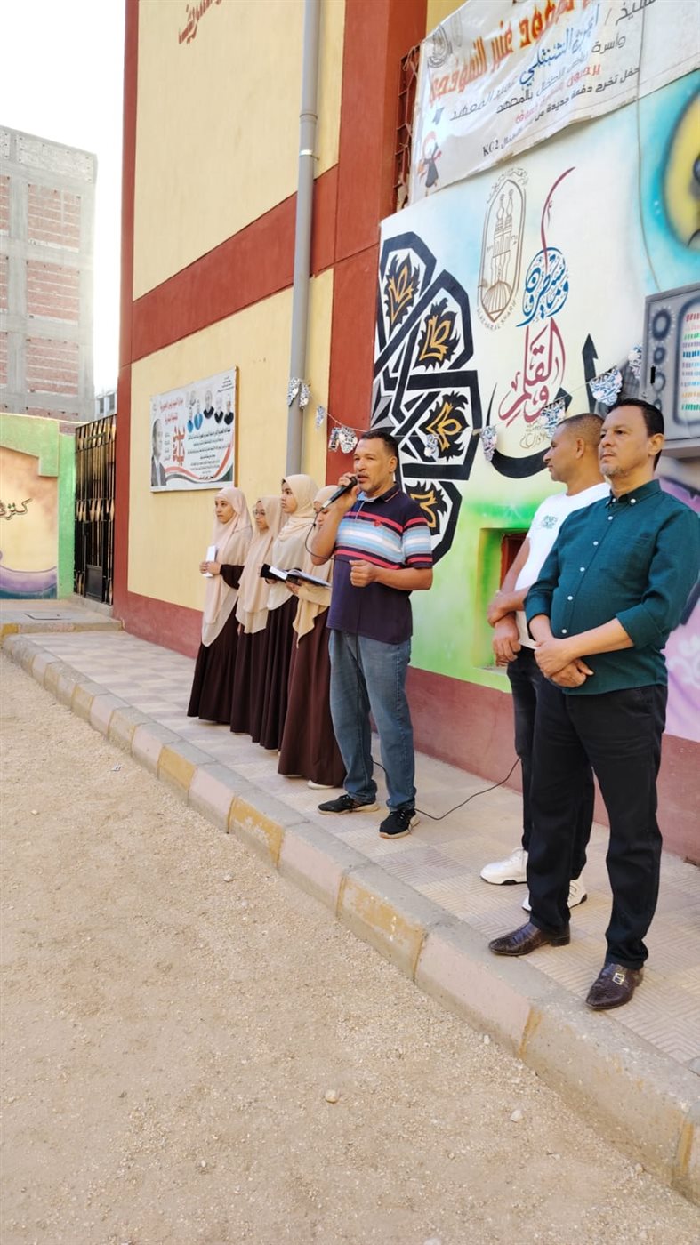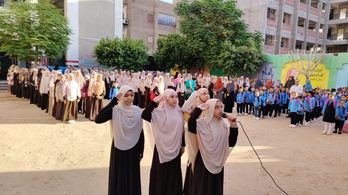 ومع بداية الطابور المدرسي، علت أصوات الكلمة الإذاعية التي حملت بين طياتها معاني التفاؤل والأمل وحب الوطن، لتبث الحماس في نفوس الجميع وتؤكد على قيمة التوافق بين العلم والدين.