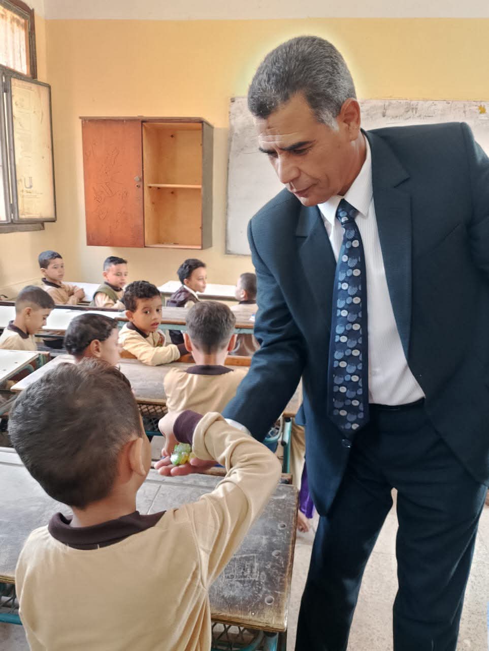 وكان في استقبالهم فاتن أحمد وكيلة المدرسة وأعضاء هيئة التدريس، حيث حرصا على مشاركة التلاميذ فرحتهم ببدء الدراسة، وقاما بتوزيع الحلوى عليهم إدخالًا للبِهجة والسرور في نفوسهم.