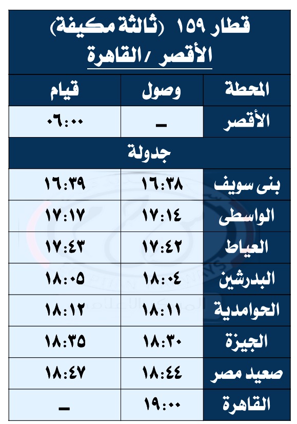 أدخلت الهيئة القومية لسكك حديد مصر، تعديلات جديدة مختلفة على مواعيد تحرك قطارات السكة الحديد الخاصة بالوجه القبلي، من خلال إضافة عربات ثانية فاخرة على خط القاهرة - أسيوط والعكس، وذلك اعتبارا من اليوم السبت الموافق 27 سبتمبر 2025.