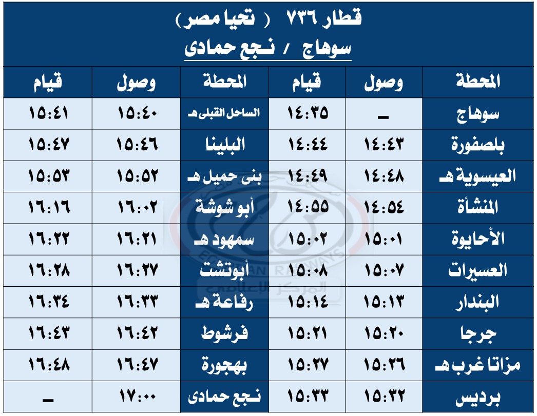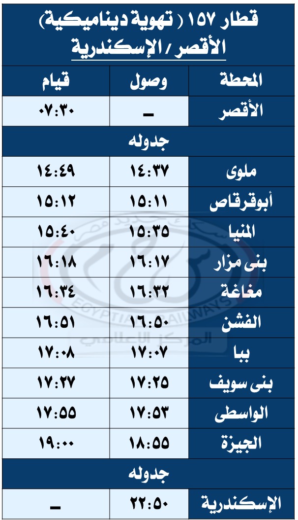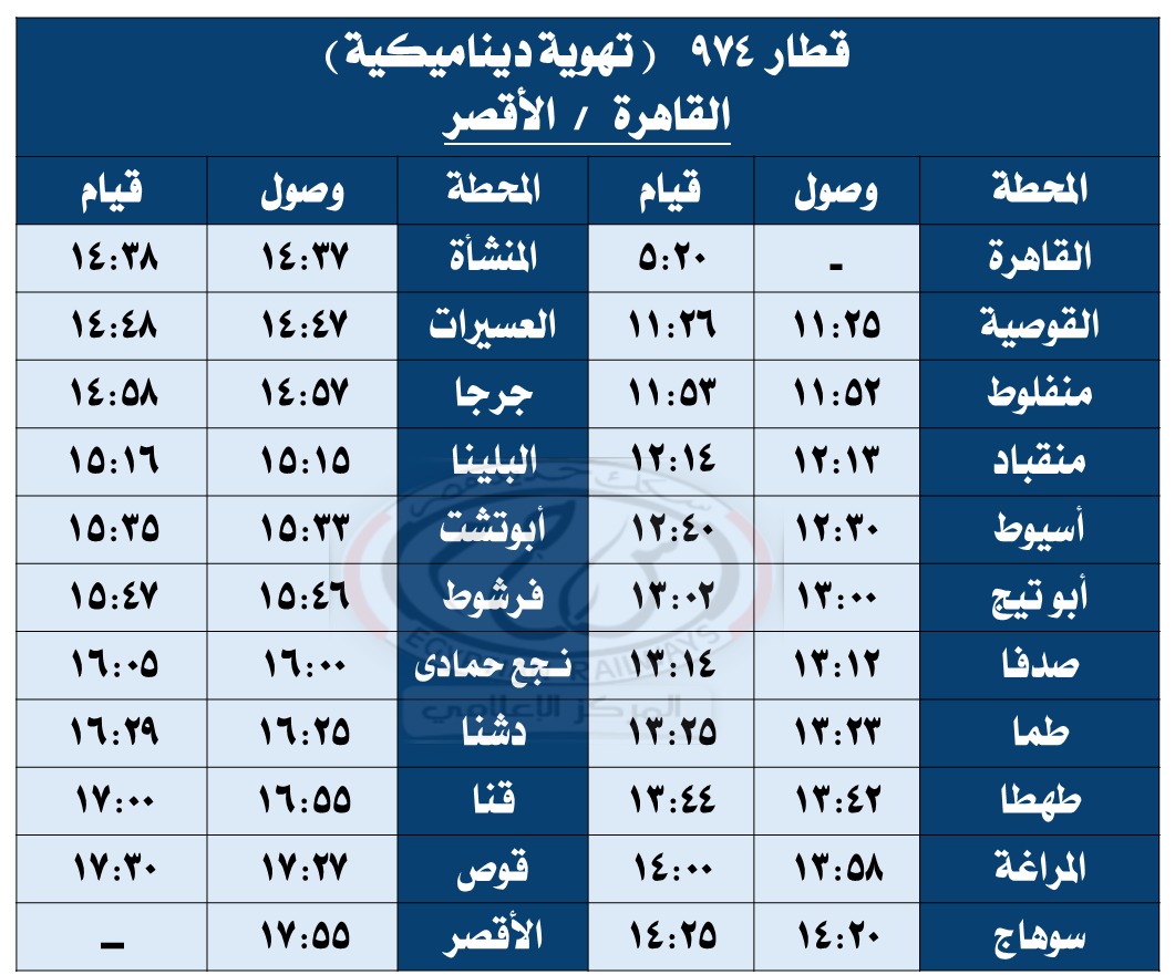 وبحسب مستند التعليمات الخاصة بالتعديلات الجديدة، فقد تقرر تعديل مواعيد القطارات أرقام ( 979 – 974 – 736 – 703 – 157 – 3018 – 713 – 153 – 159 – 978 – 944 – 975 – 81 – 4 – 31 – 3503 ) طبقًا للجداول المرفقة.