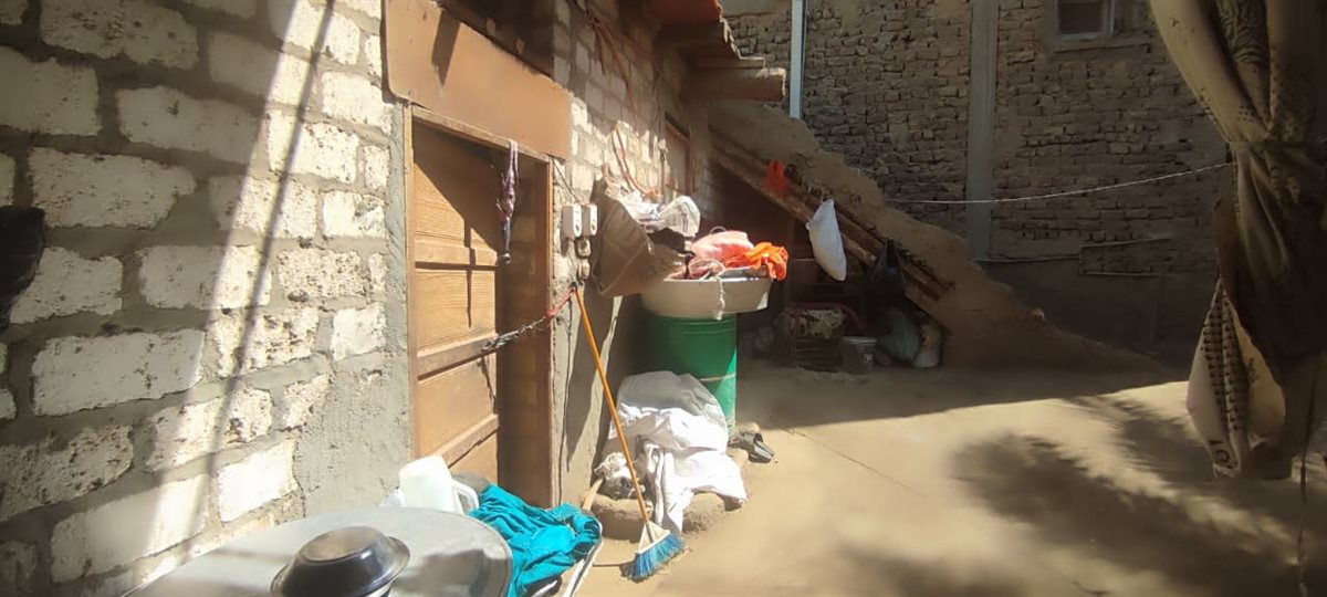 الأسرة التي تتكون من زوجته وأبنائه الثلاثة، بالإضافة إلى والده ووالدته، تعيش في منزل طيني بسيط مساحته لا تتعدى 70 مترًا، يفتقر إلى الحد الأدنى من مقومات الحياة، ويخشى سكانه من العقارب والجرذان، ولا يملكون حتى دولابًا لحفظ ملابسهم.