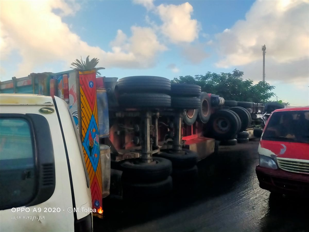 التريلا اتقلبت.. إصابة 5 أشخاص في حادث تصادم أتوبيس مع سيارة نقل ثقيل بالإسكندرية
