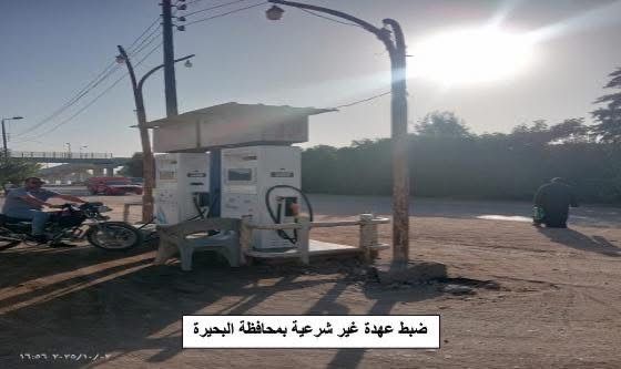 كما تم ضبط محطة غير شرعية، لا تمتلك أية مستندات، بمركز كوم حمادة بمحافظة البحيرة، كانت تقوم بتداول السولار والبنزين داخل تنكات فوق سطح الأرض، غير مطابقة للمواصفات، وغير مؤمنة، كما أن منتجاتها غير مطابقة للمواصفات، وتم التنسيق مع التموين لإزالة المخالفة بعد إخطار النيابة العامة.