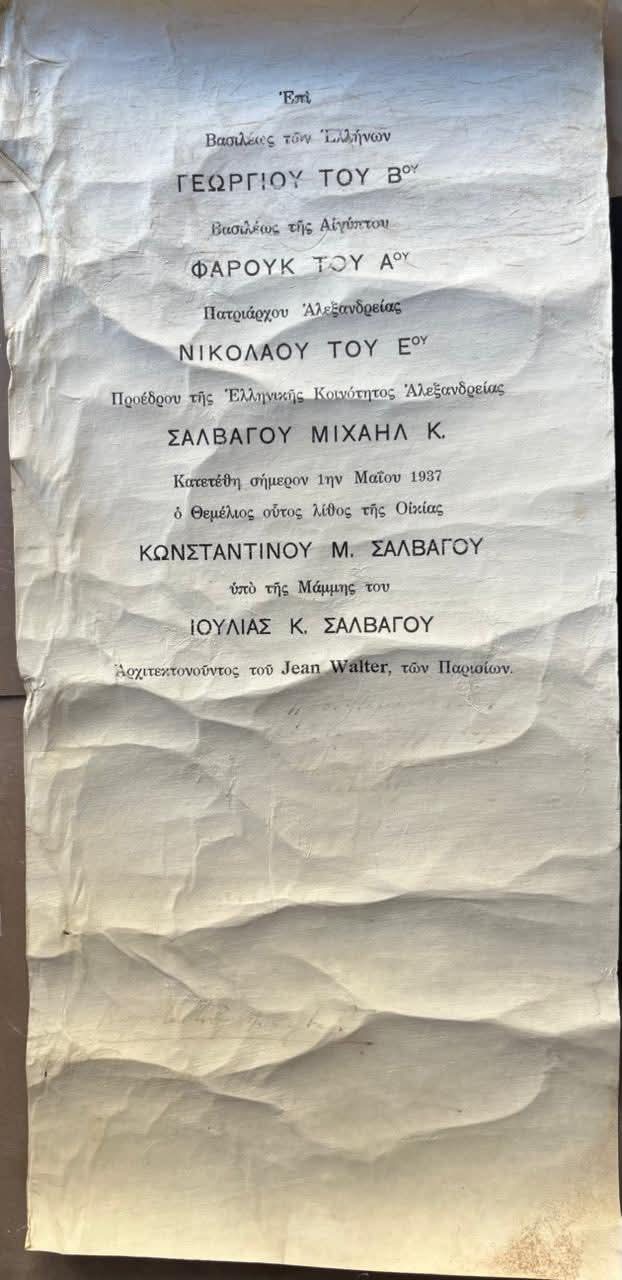 وعن الكشف الأثري، أوضح مدير آثار وسط الإسكندرية، أن العملات والكبسولة والوثيقة تم العثور عليهم داخل أبيار سكندرية كانت مستخدمة كأساس لفيلا سيلفاجو بشارع بني العباس بالقرب من المركز الثقافي الروسي، والتي تحولت لبنك، ثم أثناء هدمها كانت الكبسولة ملقاه في أساساتها الخرسانية كحجر أساس لجلب البركة.