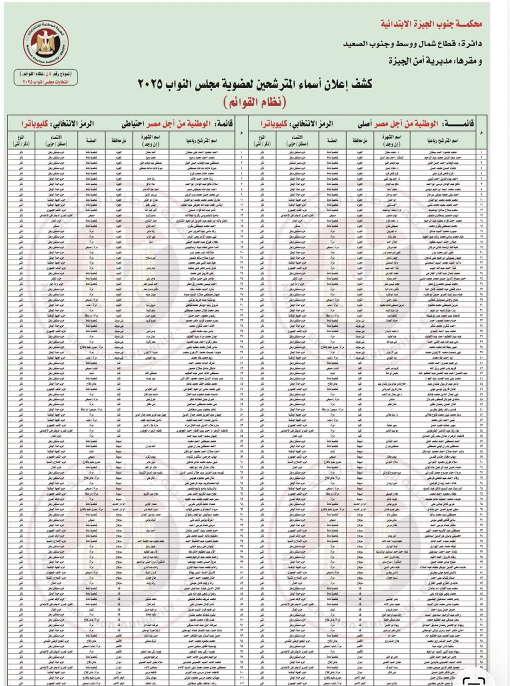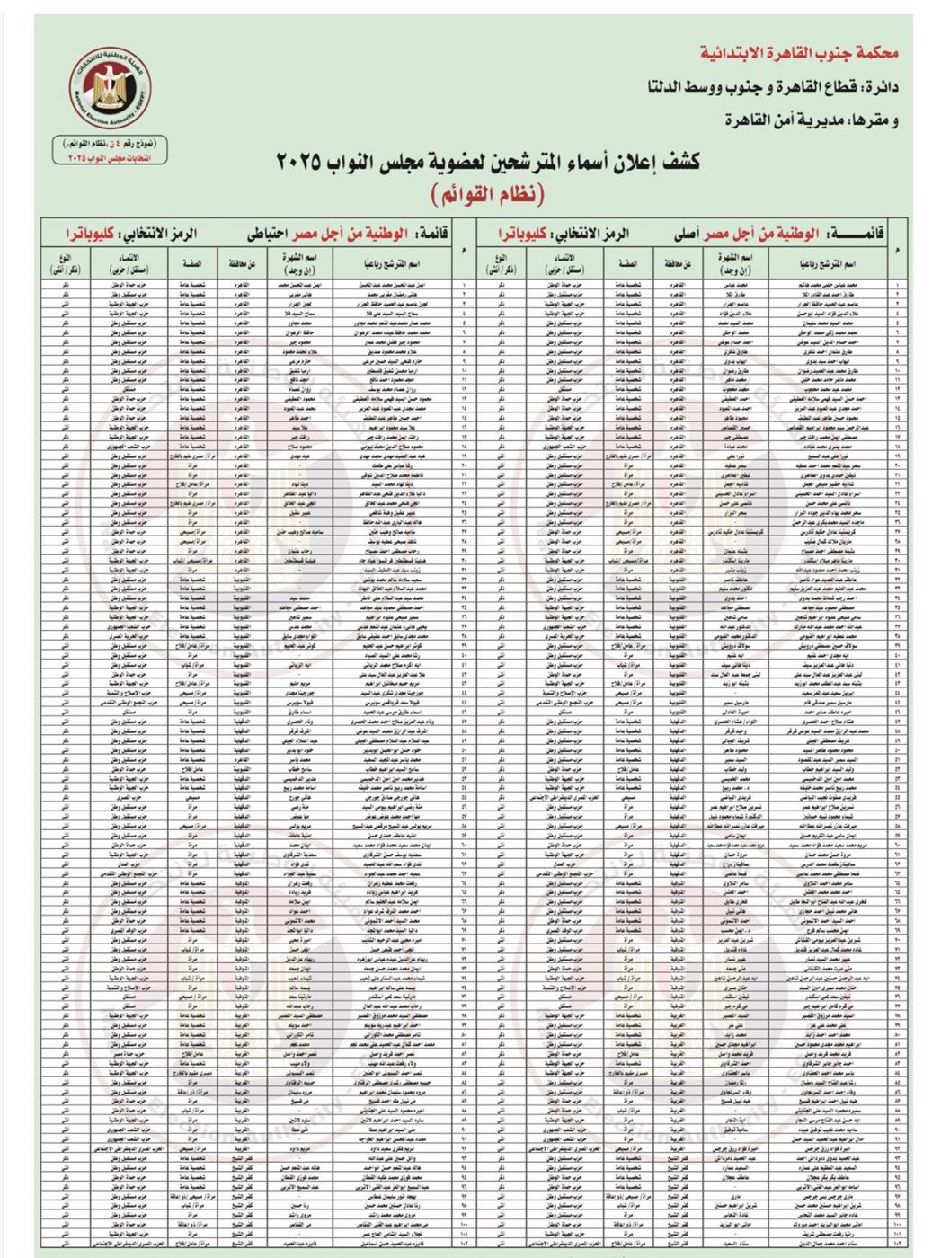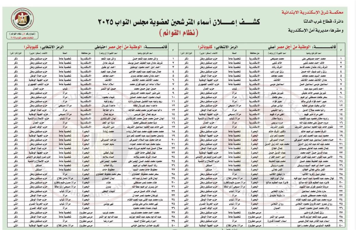 وجاء مرشحو القوائم لانتخابات مجلس النواب 2025، كالآتي: