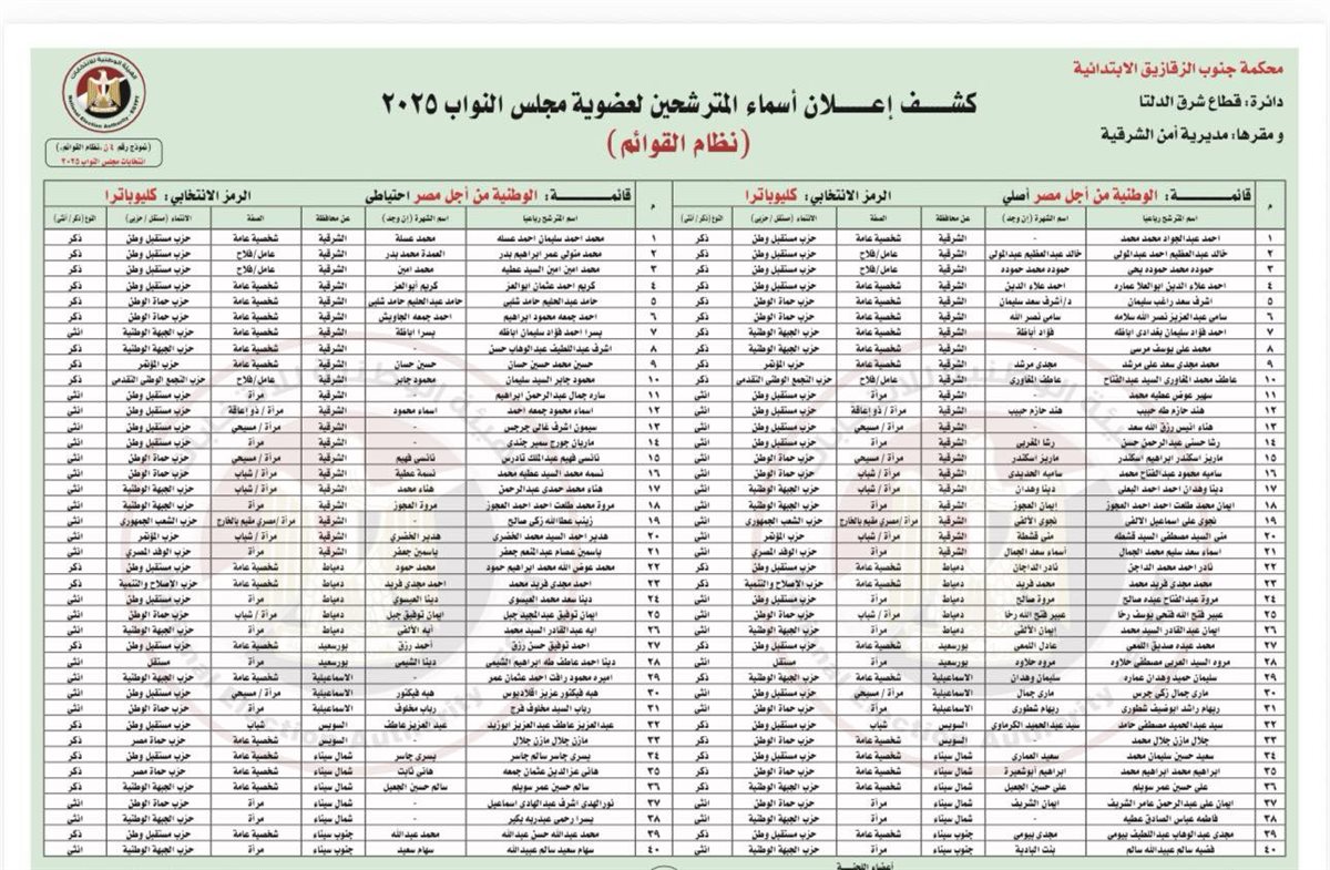 3- مرشحى نظام القوائم لانتخابات مجلس النواب 2025 قطاع شرق الدلتا: