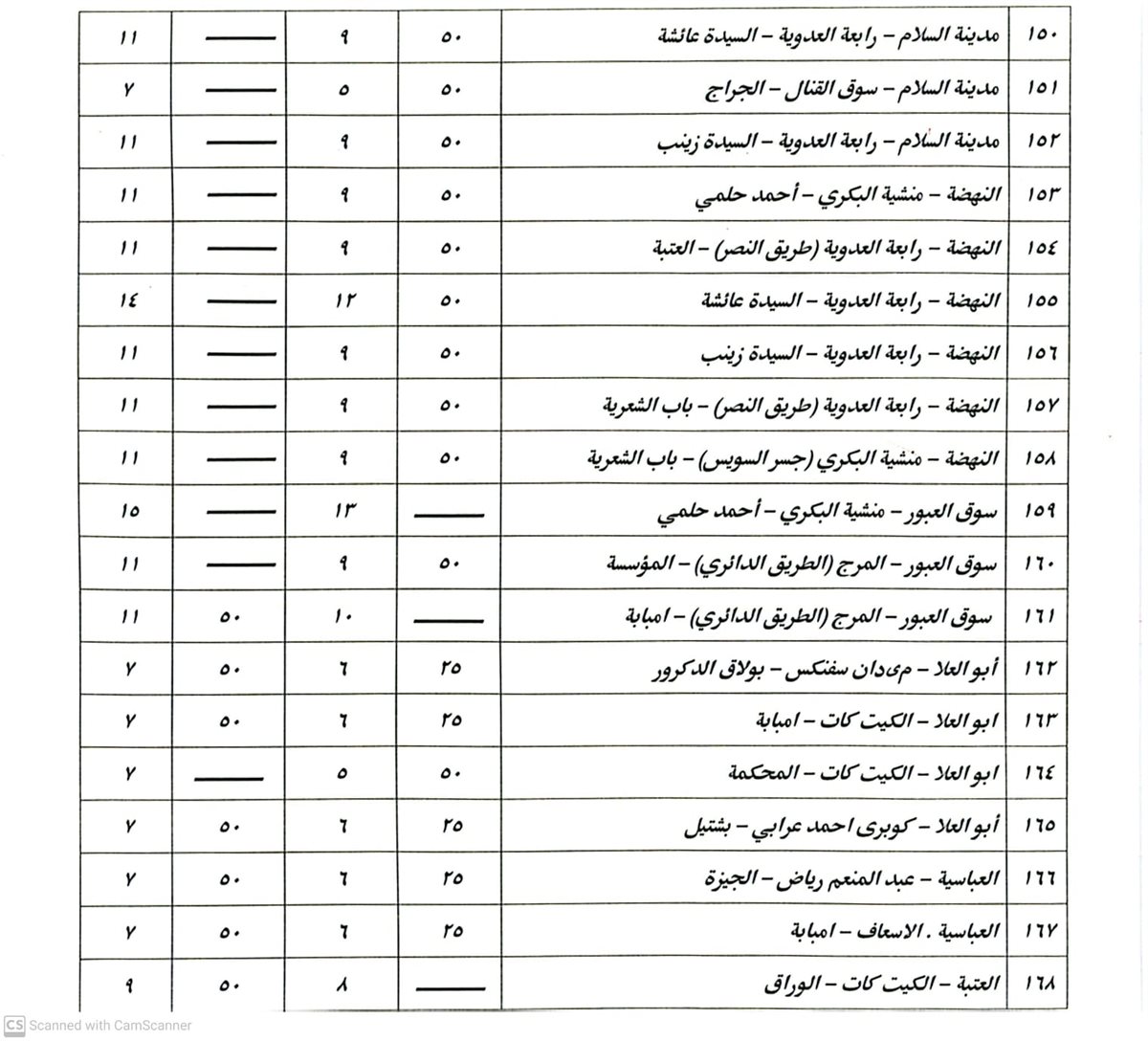 وأكد الدكتور إبراهيم صابر، محافظ القاهرة، أن التعريفة الجديدة رُوعيت فيها مسافة كل خط سير وعدد الرحلات، تحقيقًا لمبدأ العدالة بين المواطنين والسائقين، مشيرًا إلى أنه تم التنسيق مع المحافظات المجاورة التي تربطها خطوط سير بالقاهرة لضمان توحيد الأسعار ومنع أي استغلال للمواطنين.