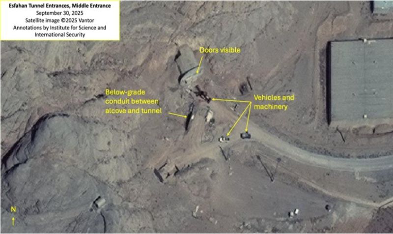 ووفقًا للتقرير، تُظهر صور الأقمار الصناعية الملتقطة بين أواخر سبتمبر وبداية أكتوبر أن ثلاثة مداخل رئيسية للأنفاق داخل المجمع النووي تشهد أعمال ترميم وتدعيم متواصلة، ويرجح المعهد أن هذه التحركات لا تتعلق بنقل أجهزة الطرد المركزي أو اليورانيوم المخصب، وإنما تهدف إلى تعزيز الأنفاق وزيادة قدرتها على الصمود في حال تعرضها لهجمات جديدة.