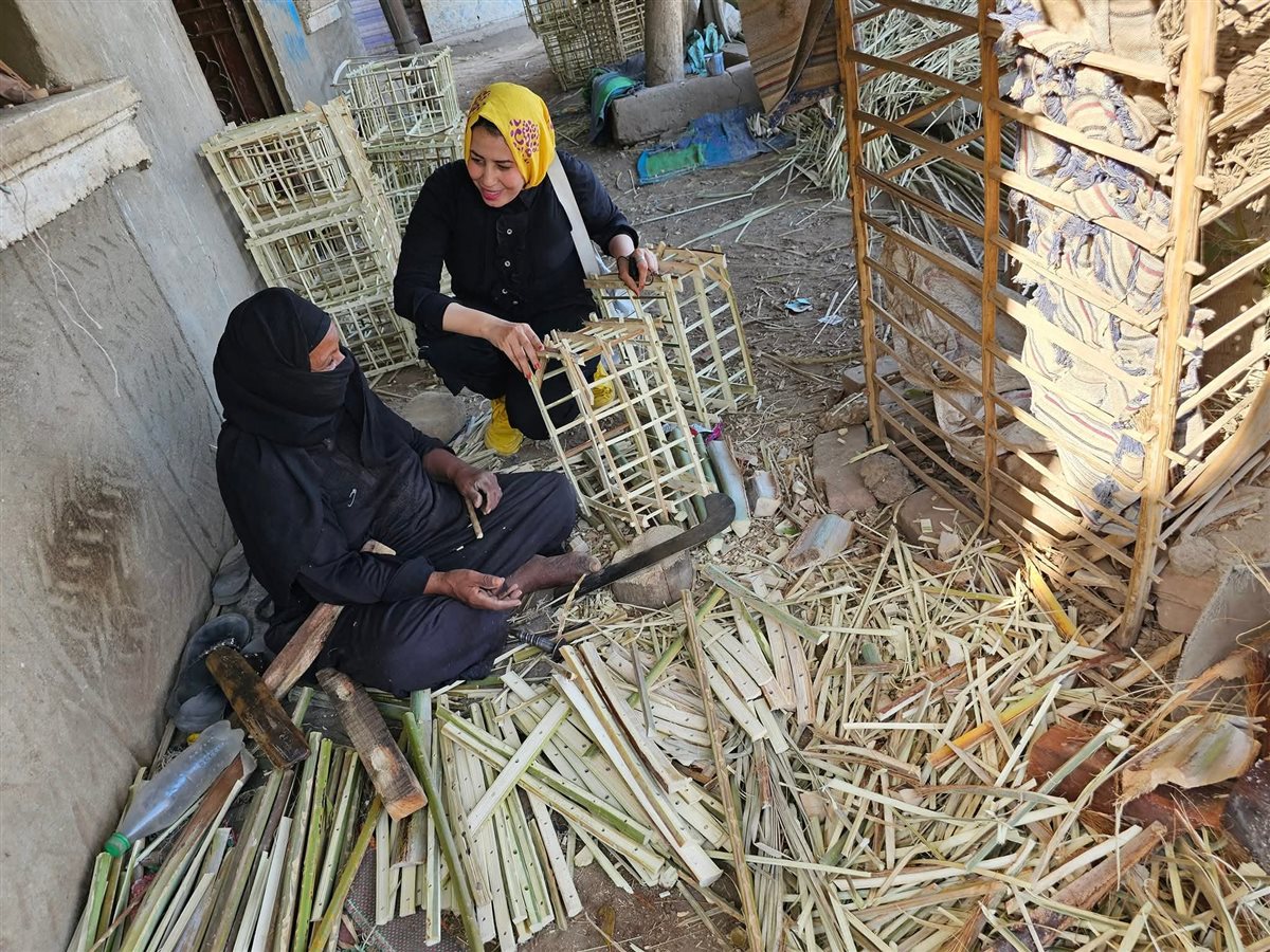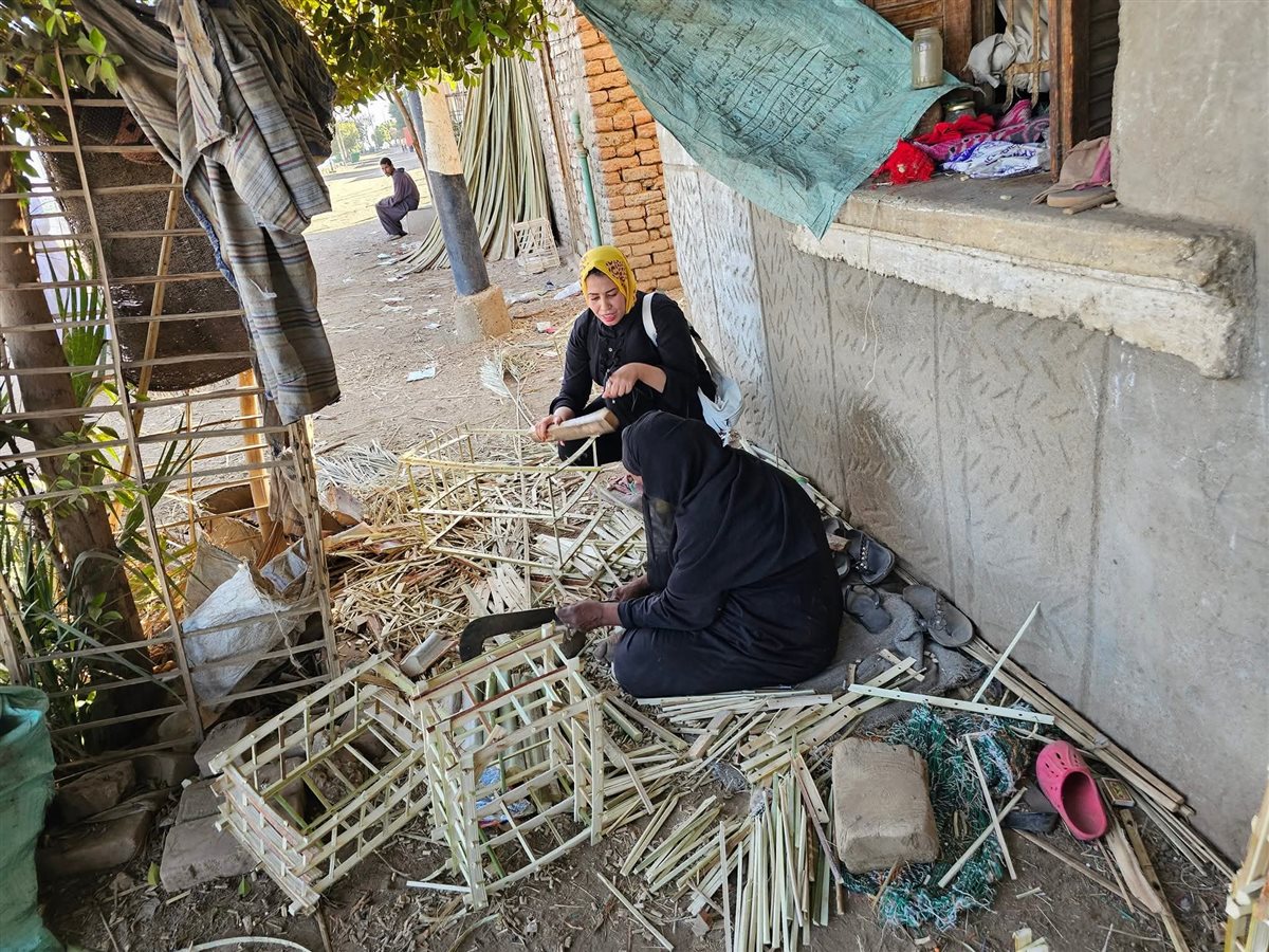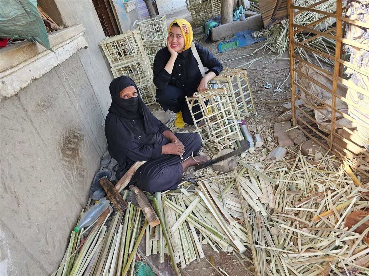 وأضافت أن زوجها أيضًا كان يعمل في جريد النخيل وكل أهالي منطقتها مهنتهم الأساسية سيدات ورجال هي صناعة الأقفاص والأثاث من جريد النخيل، لذلك أبنائها عملوا بذات المهنة وجميعهم تزوجوا وأصبح كل منهم يعول أسرة من صناعة أقفاص الخضروات والفواكه.
