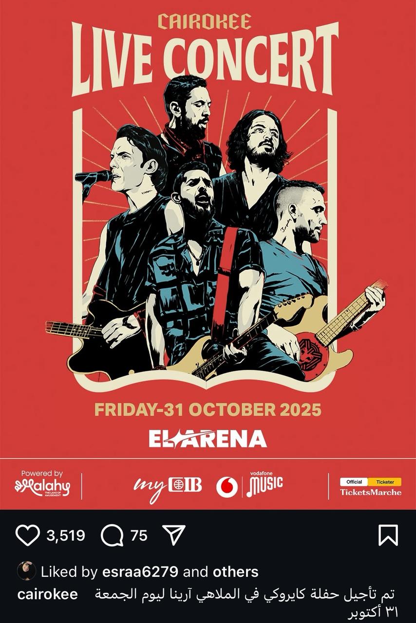 ونشرت فرقة كايروكي بوستر الحفل، عبر حسابها الشخصي بموقع تبادل الصور والفيديوهات انستجرام، وعلقت عليه: تم تأجيل حفلة كايروكي في الملاهي آرينا ليوم الجمعة 31 أكتوبر.