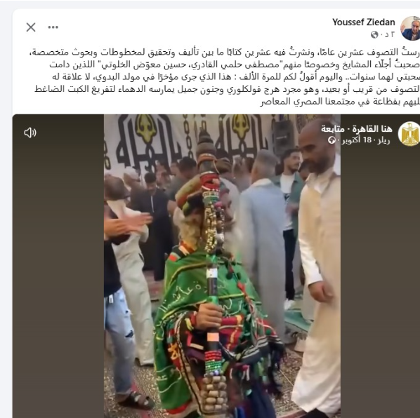 وتأتي تصريحات زيدان في وقت تشهد فيه بعض الموالد الصوفية جدلًا واسعًا حول طبيعة الاحتفالات وأثرها على صورة التصوف في المجتمع المصري، في ظل محاولات بعض الجهات للحفاظ على الطابع التراثي لهذه المناسبات، مقابل دعوات لمراجعة الممارسات بما يتوافق مع قيم الدين والتقاليد الأصيلة.