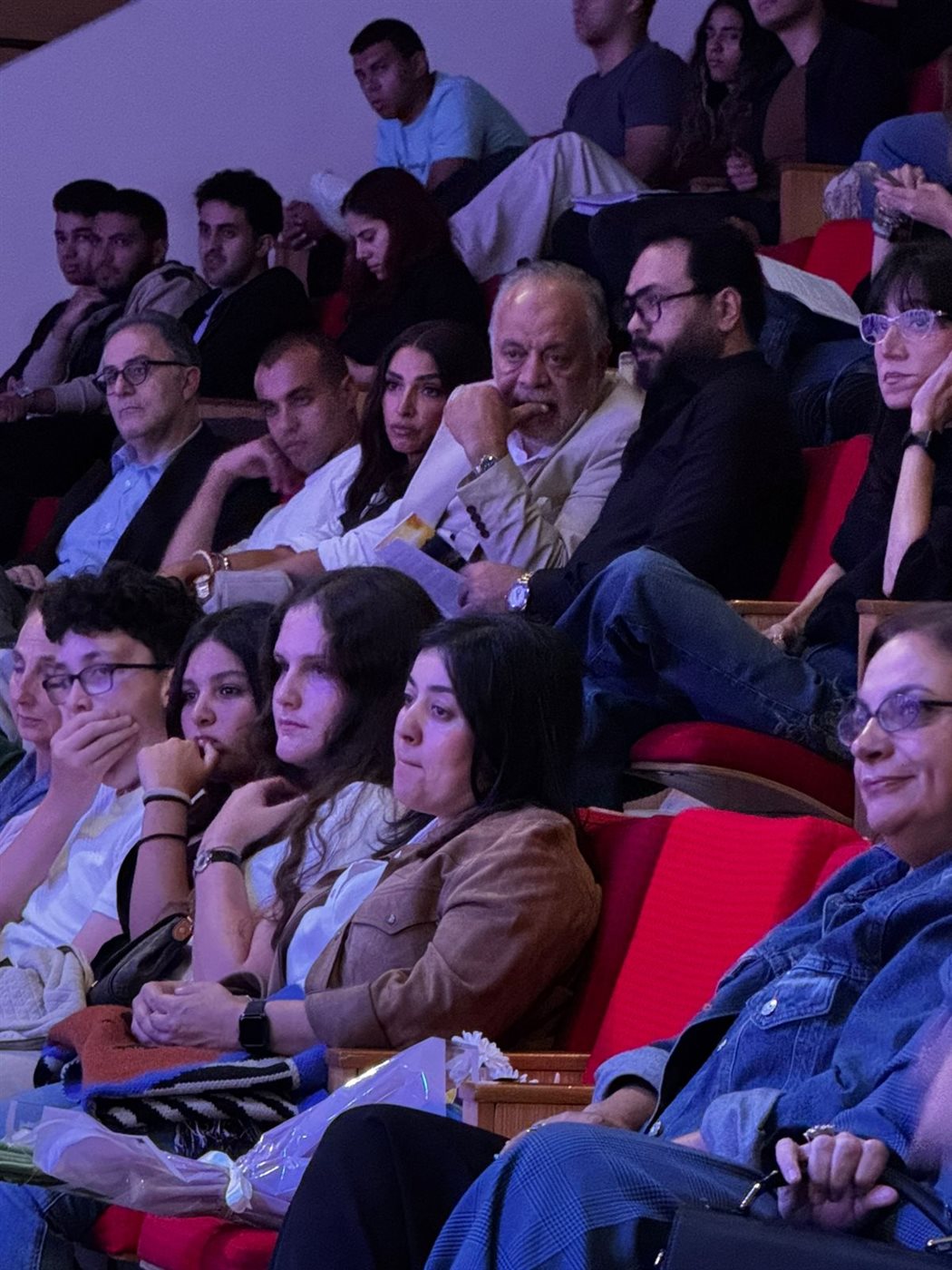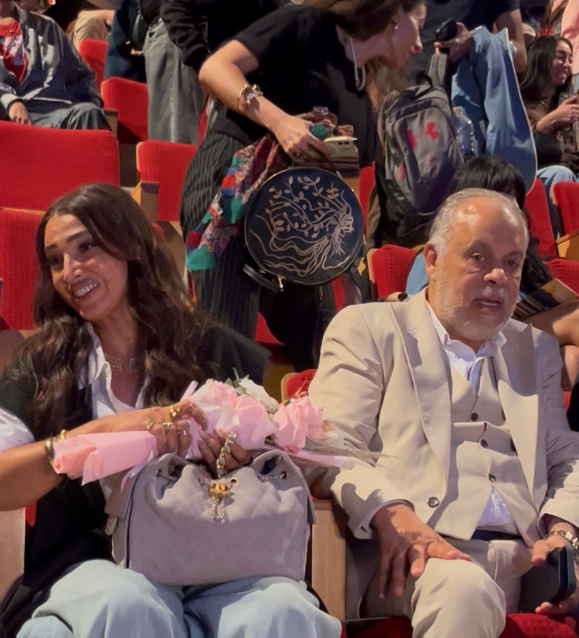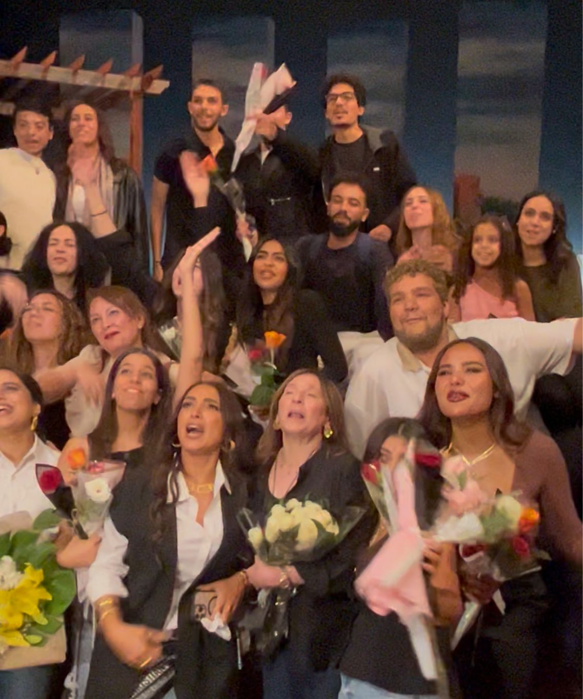 وبعد انتهاء العرض، صعدت النجمة روجينا وابنتها المخرجة مايا أشرف زكي ووالدهما الدكتور أشرف زكي إلى خشبة المسرح، حيث قدّموا لـ مريم وأصدقاءها باقة ورد احتفالًا بأدائها المميز، وسط تصفيق حار ومشاعر فخر عائلية.