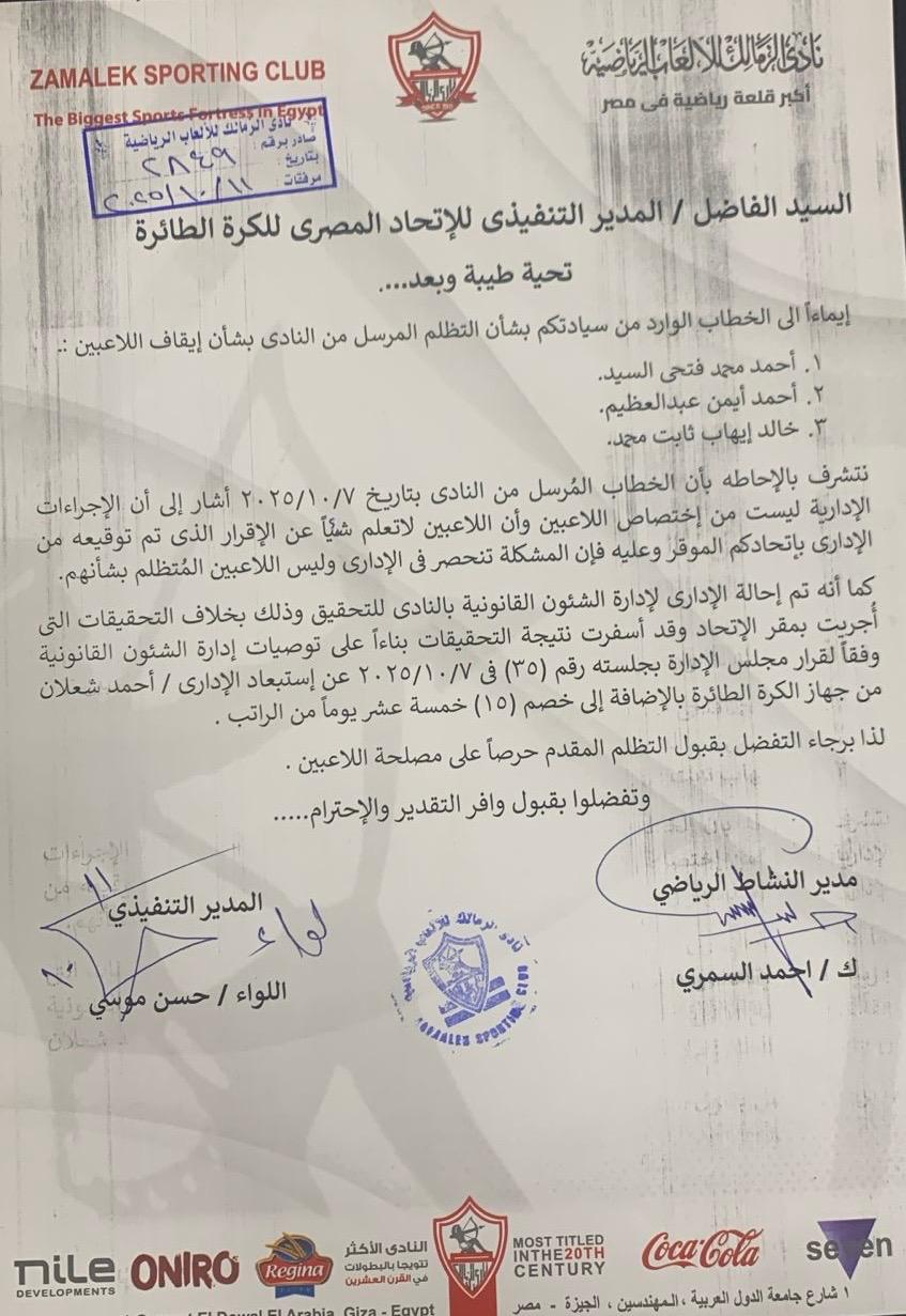وأكد نادي الزمالك في خطابه الموجه إلى الاتحاد المصري للكرة الطائرة حرصه على تطبيق اللوائح والقوانين، والحفاظ على الانضباط الإداري داخل جميع الألعاب بالنادي، مشددًا على أن ما حدث يعد تصرفًا فرديًا لا يمثل سياسة النادي.