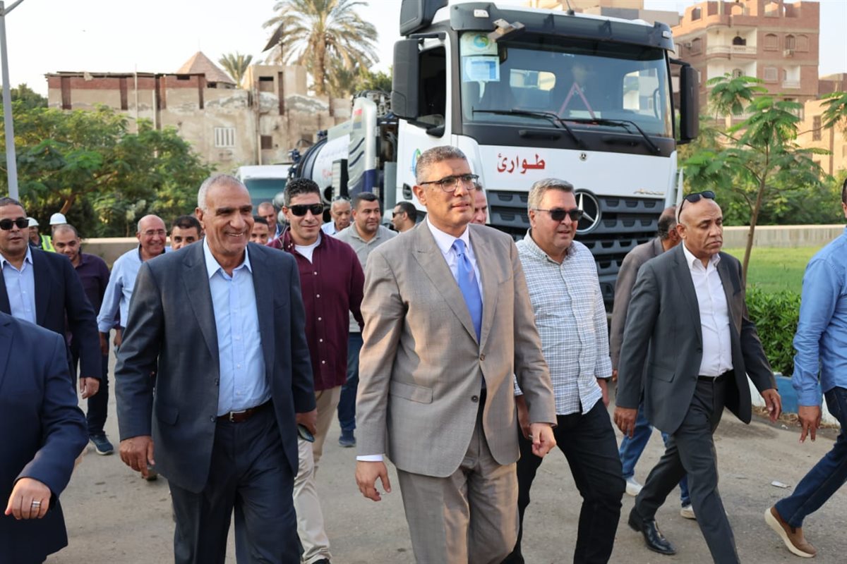 محافظ الجيزة يتفقد اصطفاف معدات شركة مياه الشرب والصرف الصحي للتعامل مع أي بلاغات طارئة وضمان انتظام الخدمات