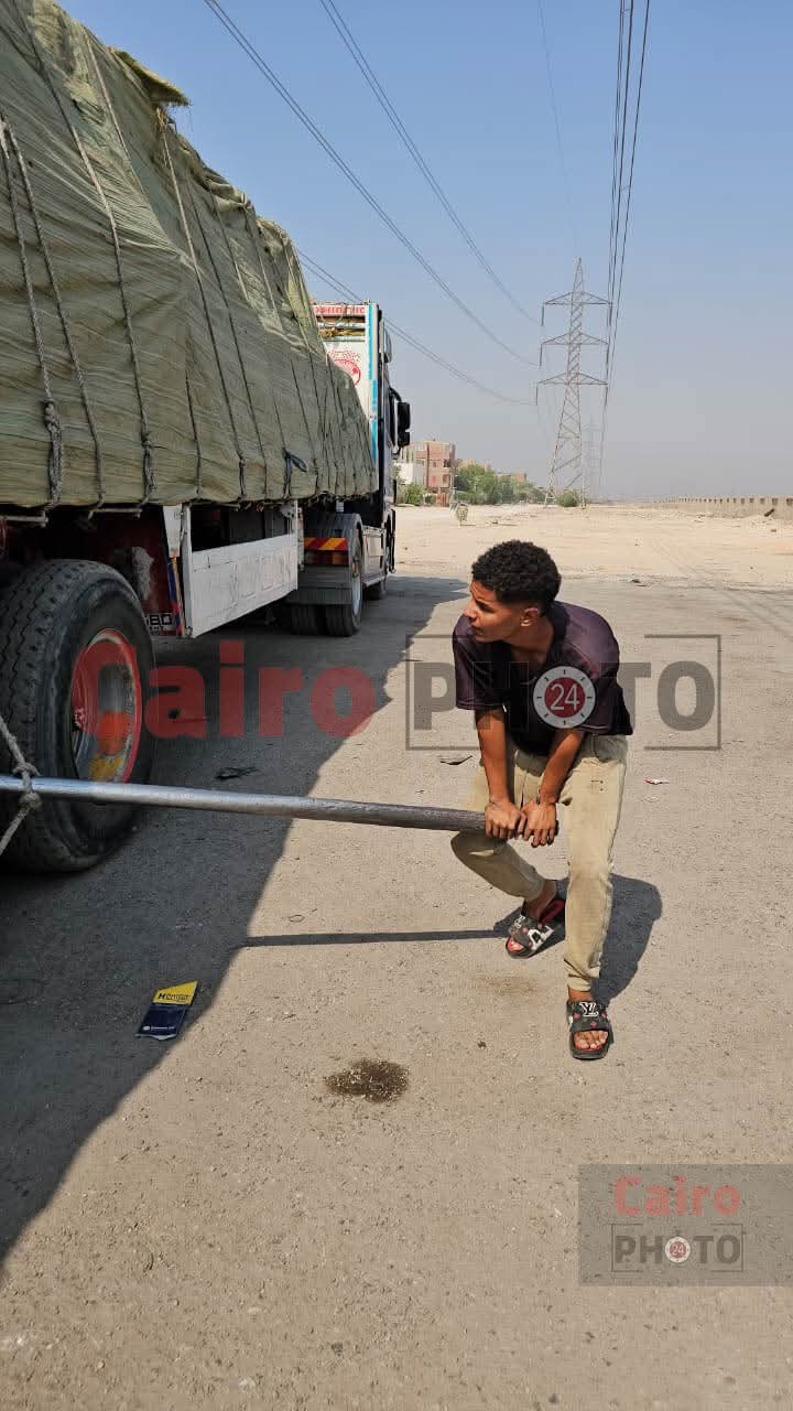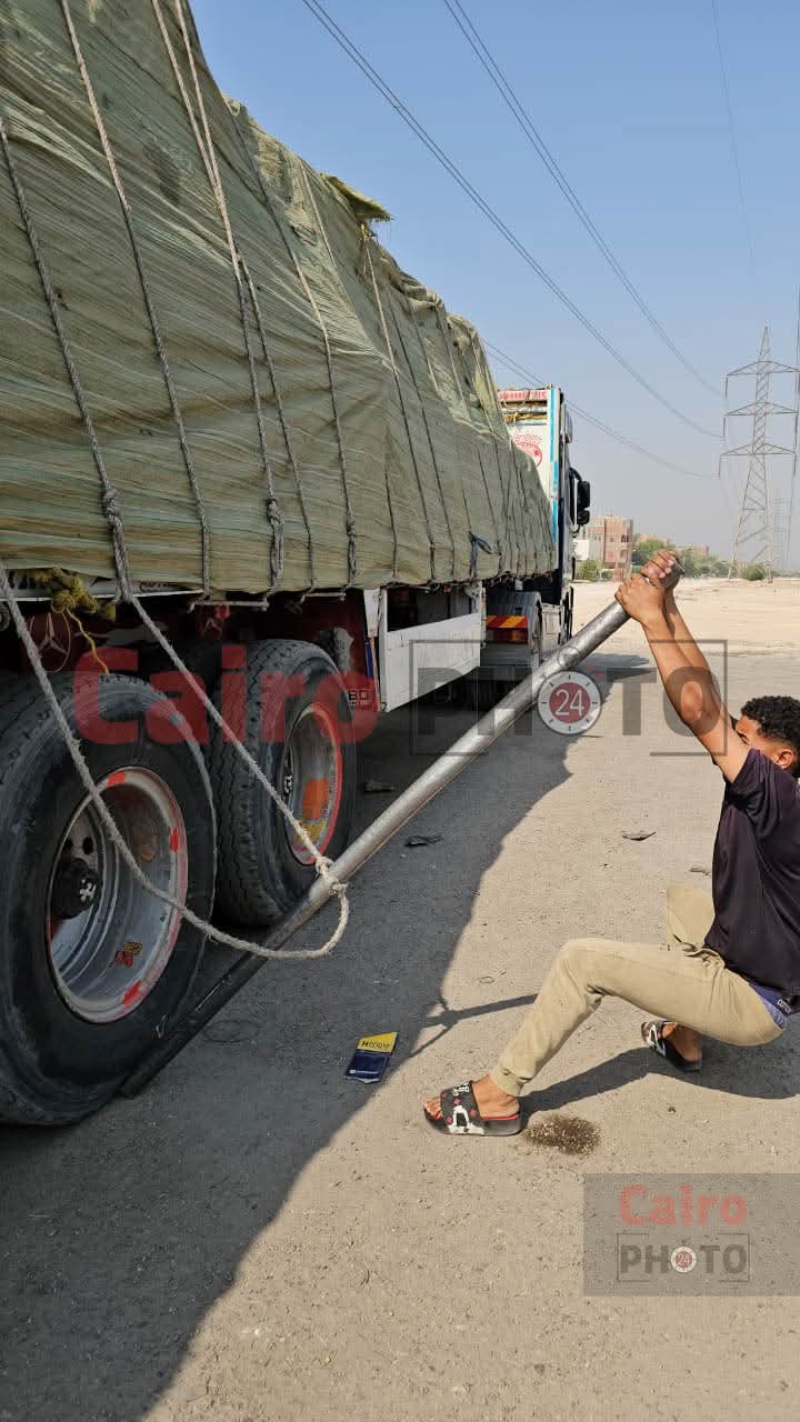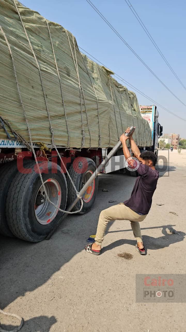 بيهون خطورة مهنته بالغناء.. قصة الشاذلي مع مهنة تربيط الحمولات على سيارات النقل الثقيل على صحراوي قنا