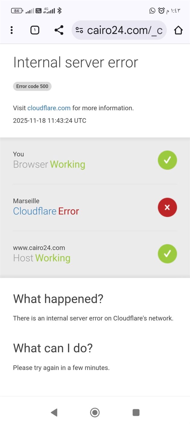مشاكل تقنية في خدمة كلاود فلير تتسبب في تعطل مواقع ومنصات عالمية داخل مصر