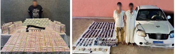 وأكدت معلومات وتحريات قطاعي الأمن العام ومكافحة المخدرات والأسلحة والذخائر غير المرخصة، بالتنسيق مع أجهزة الوزارة المعنية قيام بؤر إجرامية بنطاق عدد من المحافظات تضم عناصر جنائية شديدة الخطورة، بجلب كميات من المواد المخدرة والأسلحة النارية غير المرخصة تمهيدًا للإتجار بها.