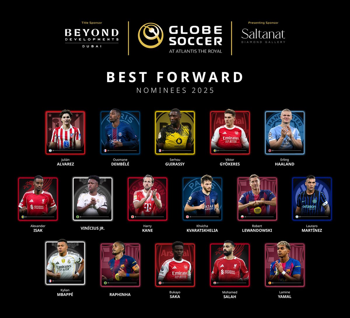 وجاءت قوائم المرشحين على جوائز جلوب سوكر 2025 كالآتي: