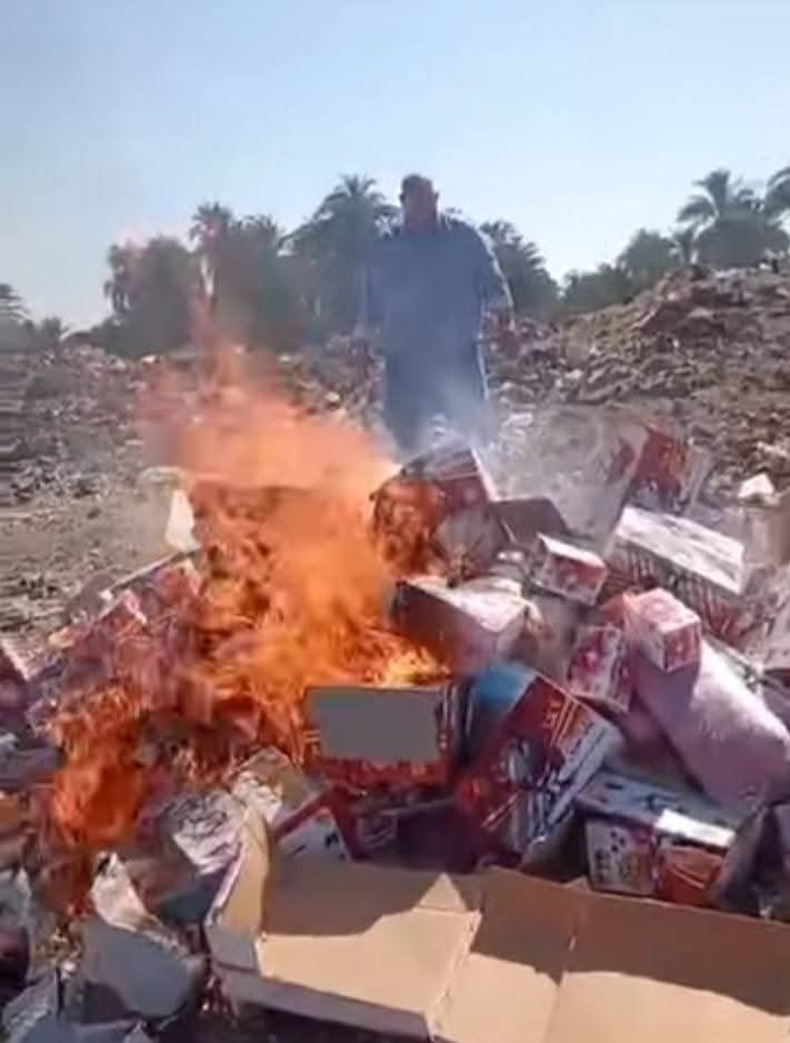 وأوضح أن هذه الحلوى غير صالحة للاستهلاك الآدمي، وتم إعدام هذه الحلوى برئاسة أشرف فوزي عبدالحكيم مدير الإدارة واللجنة المشكلة بناء على قرار من النيابة العامة.