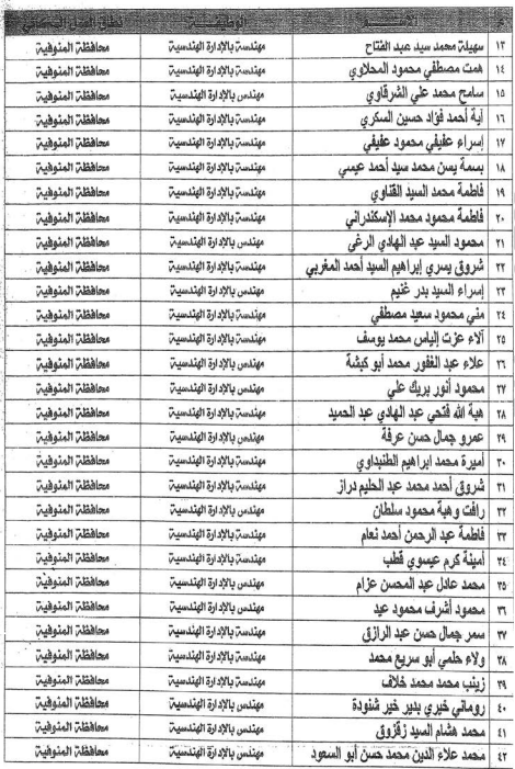 منح 52 مهندسًا بالإدارات الهندسية بالمنوفية صفة مأمور الضبط القضائي |أسماء