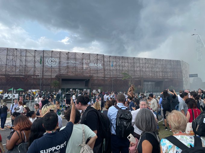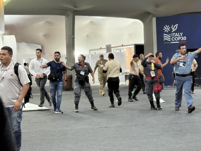 شهد مؤتمر المناخ COP30 بالبرازيل حالة طارئة اليوم، بعد اندلاع حريق خارج موقع انعقاد الفعاليات، مما دفع الجهات المنظمة إلى إصدار توجيهات عاجلة بإخلاء المكان فورا حرصا على سلامة المشاركين.