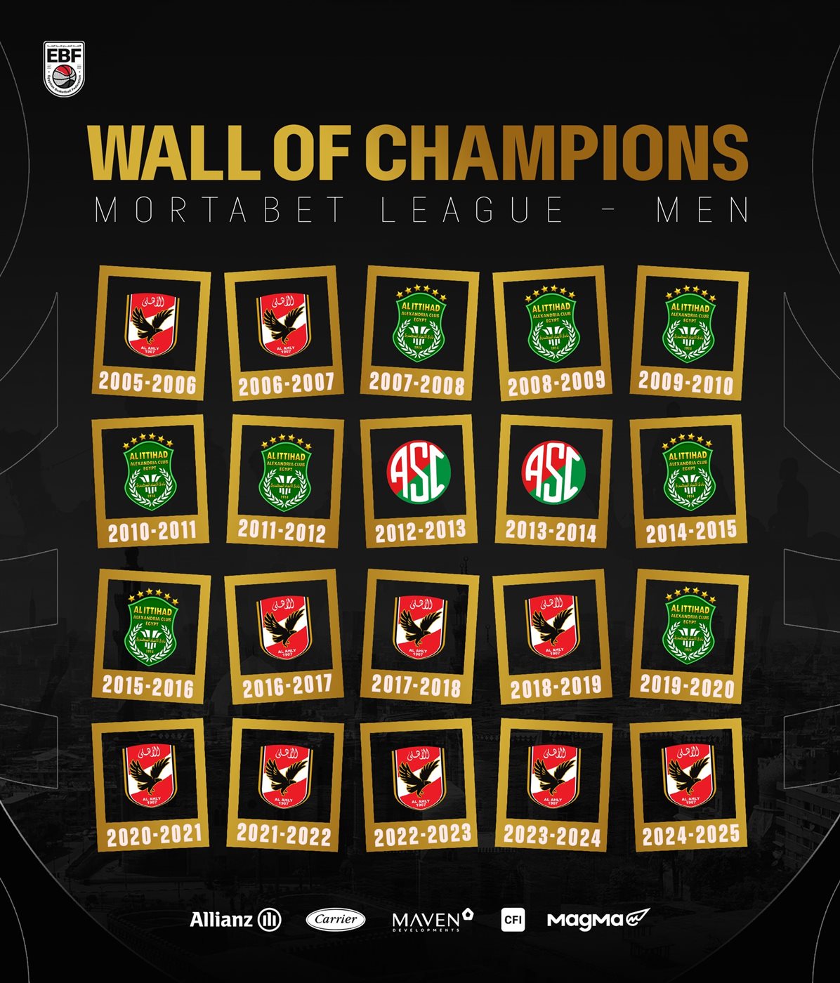 وكشفت سجل أبطال منافسات دوري المرتبط عن تفوق واضح للمارد الأحمر، حيث تُوِّج الفريق باللقب 5 مرات متتالية منذ موسم 2020-2021 وحتى الآن، في سلسلة ذهبية غير مسبوقة للفريق الأول لكرة السلة.