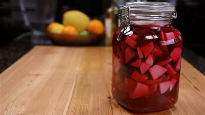 - ضع اللفت في برطمان نظيف ومعقم، وأضف المحلول حتى يغطيه بالكامل.