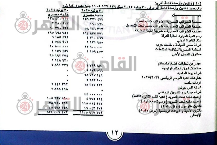 وبحسب مستند حصل عليه القاهرة 24، يبلغ إجمالي المديونيات المستحقة على اتحاد الكرة في العام المالي الماضي مليارًا و105 ملايين و927 ألف جنيه، وتستحق هذه الديون لجهات عديدة منها جهات حكومية وأخرى خاصة.