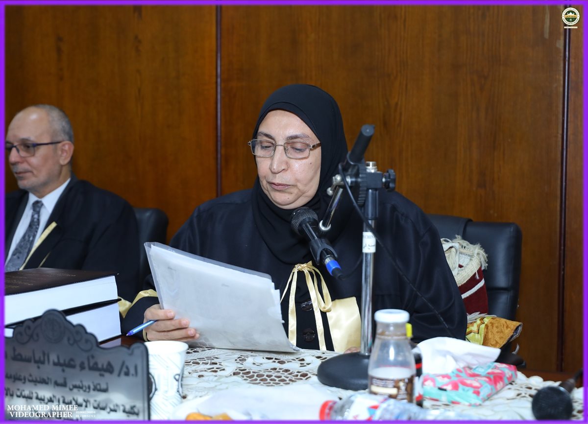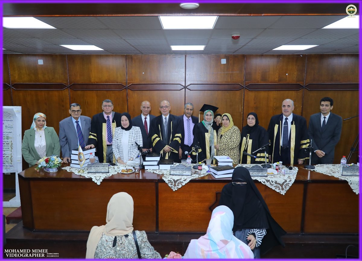 وشارك في المناقشة كوكبة من أساتذة الكلية ترأسهم عميدة الكلية الأستاذة الدكتورة عبير عبد الصادق، ووكيلة الكلية الأستاذة الدكتورة غادة العمروسي، والأستاذ الدكتور محروس رضوان؛ أستاذ الحديث وعلومه المتفرغ بالكلية، والأستاذة الدكتورة هيام عبد الباسط؛ أستاذ الحديث وعلومه المتفرغ، ورئيس وحدة ضمان الجودة بالكلية، والأستاذ الدكتور محمد حسن قنديل أستاذ الحديث وعلومه، والأستاذة الدكتورة هويدا الطويل أستاذ العقيدة والفلسفة، والأستاذة الدكتورة نجوى شتا أستاذ ورئيس قسم الفقه السابق، والدكتورة أميمة حسن؛ مدرس الفقه المقارن، ونائب رئيس وحدة ضمان الجودة بالكلية، والدكتور محمد أبو زهو مدرس الحديث وعلومه، والدكتور إسلام محمود مدرس الحديث وعلومه، والعديد من السادة أعضاء هيئة التدريس.