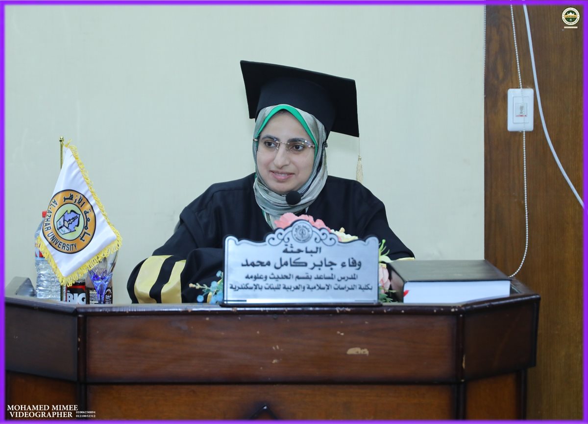 مع مرتبة الشرف الأولى.. جامعة الأزهر تمنح درجة الدكتوراه للباحثة وفاء جابر المدرس المساعد بكلية الدراسات الإسلامية والعربية بالإسكندرية