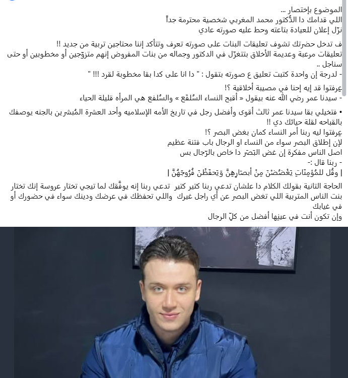 أثار إعلان طبيب مخ وأعصاب شاب، يُدعى الدكتور محمد المغربي، موجة واسعة من الجدل على مواقع التواصل الاجتماعي، بعدما نشر صورة شخصية ضمن إعلان لعيادته، لتنهال عليها تعليقات من مستخدمات المنصات تحمل طابع الغزل والمبالغة، بعضها صادر من فتيات يقدمن أنفسهن كمخطوبات أو متزوجات.