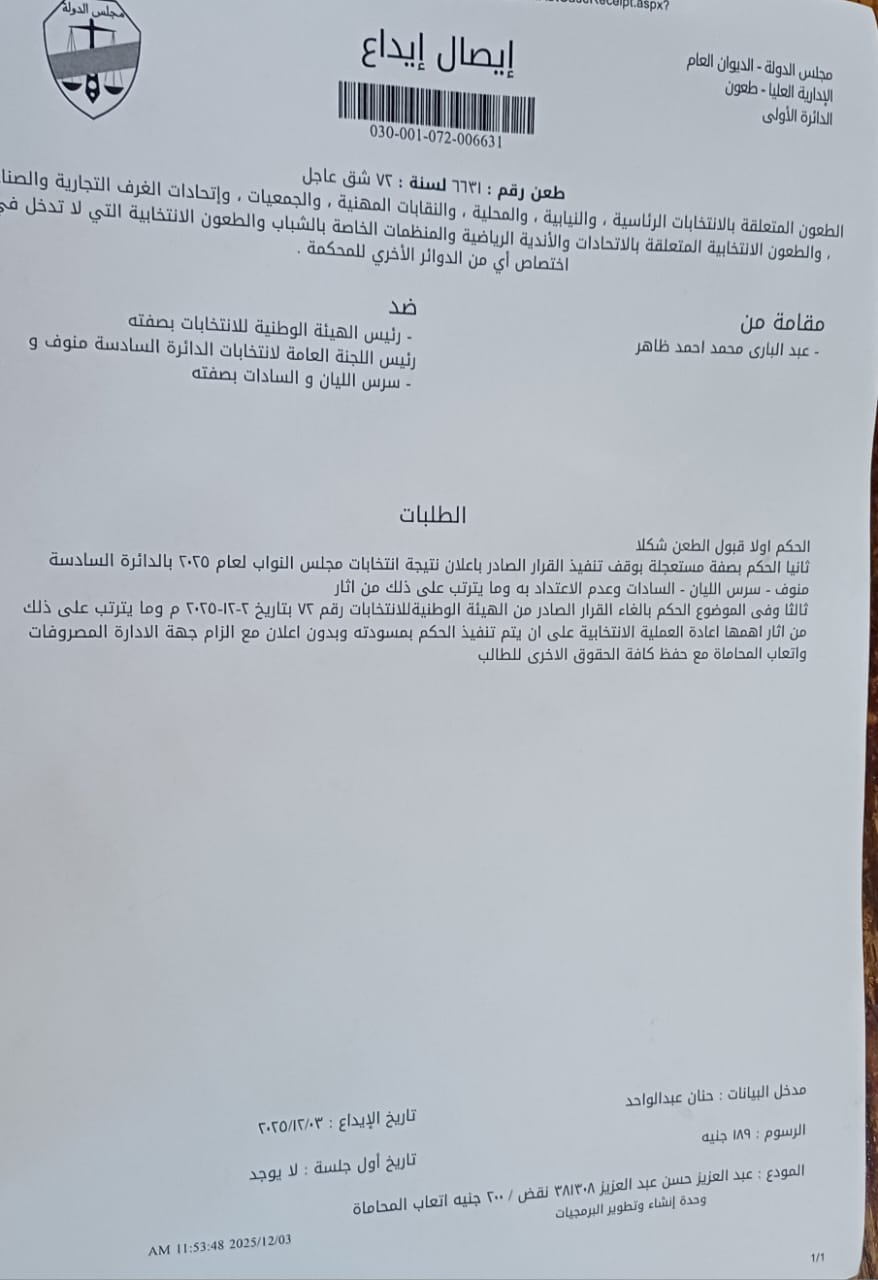وتقدم المرشحون بالطعن في المقر الرسمي للإدارية العليا بمحيط مجلس الدولة، وذلك عقب حصولهم على المستندات اللازمة من لجان المتابعة داخل الدائرة، مؤكدين في طلباتهم وجود ملاحظات تتعلق بعمليات الحصر العددي داخل بعض اللجان، مطالبين بإعادة النظر في عدد من المحاضر أو إعادة فرز بعض الصناديق وفق ما تراه المحكمة.